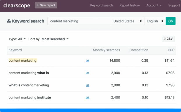 Clearscope helps marketers, SEO specialists, and content creators to publish high-quality, search-engine-optimized content. The platform provides more extensive keyword analysis than most tools. It also offers detailed reporting features that let you track content performance. Performance analysis is one of the most important — and often overlooked — aspects of content marketing.