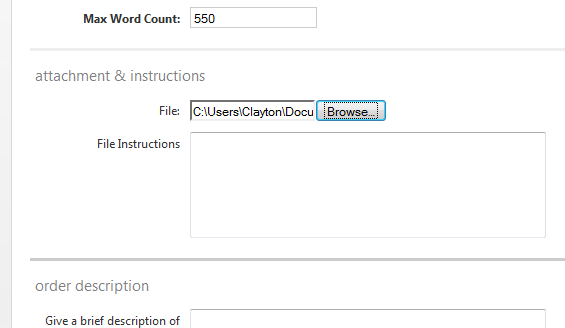 with a Microsoft Excel file, you can upload the file during the order description process. You can also upload Microsoft Word or PDF documents for orders that will benefit from supplemental materials, like re-writes.