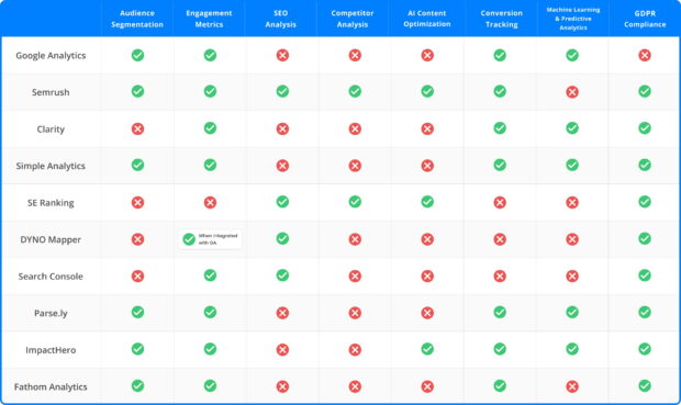 To choose a tool that meets your brand’s unique needs, consider what you want to achieve with your analytics. Common functionalities include: