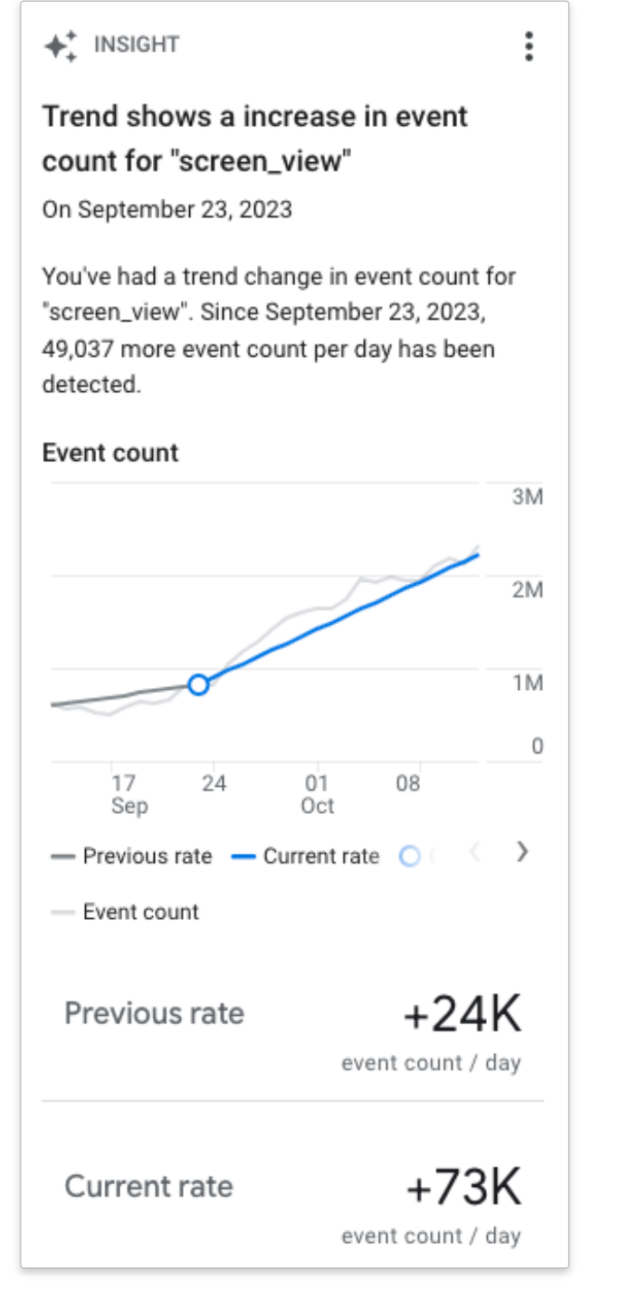 While it’s easy to look at a graph and see sudden spikes or drops in data, GA’s Trend Change detection alerts you to subtle changes in the direction of your data over longer periods of time. It works by comparing a forecasted value to the actual value.