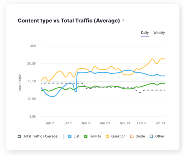 Using artificial intelligence, ImpactHero maps your customer journey to help you visualize how users interact with your site. It breaks down performance by content types, such as lists, tutorials, questions, and guides. You can also segment by traffic sources to see which channels provide the most engagement.