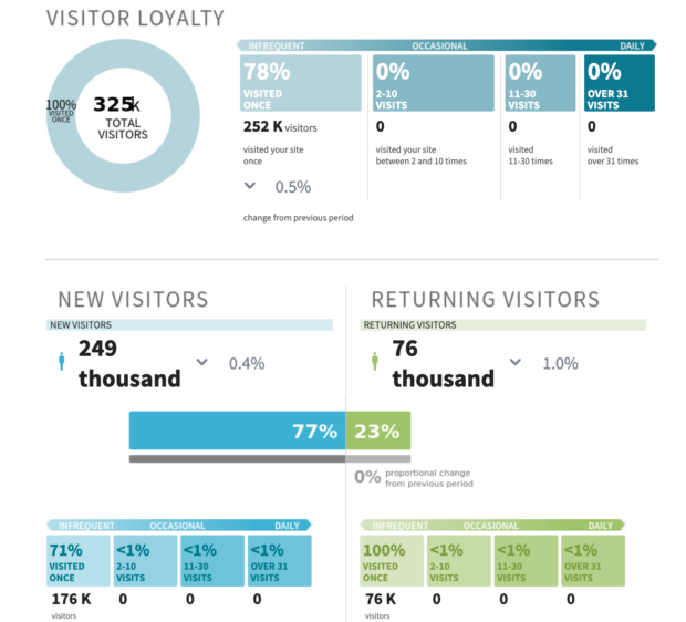 Use Parse.ly to dig deeper into traditional metrics, such as page views and time spent on a site. The tool puts the metrics in the context of content types and audience segments. For example, you might compare content read by new visitors to content read by returning visitors. These insights can inform your content production process so you can create more relevant content.