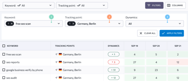 Although it’s an add-on, SE Ranking’s Local Marketing tool is worth mentioning. This tool is ideal for finding effective keywords and tracking rankings across multiple locations. You can see what search terms customers use to determine where you need to optimize your content. You can also manage reviews and check listings in different directories to improve local visibility.