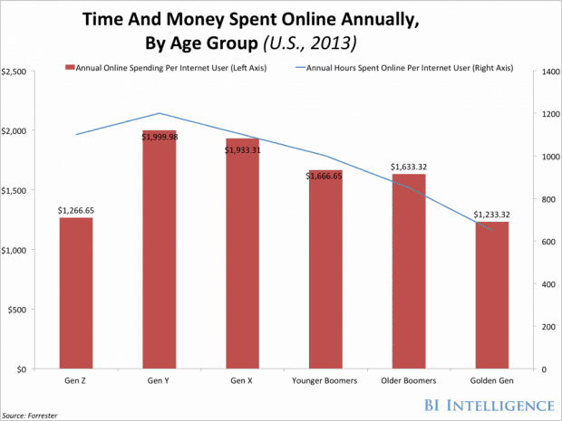 And the millennial generation is just a glimpse of what is coming. Generation Z, a generation that is still primarily composed of children and teenagers, is currently spending almost twice as much of its income online as millennials are.