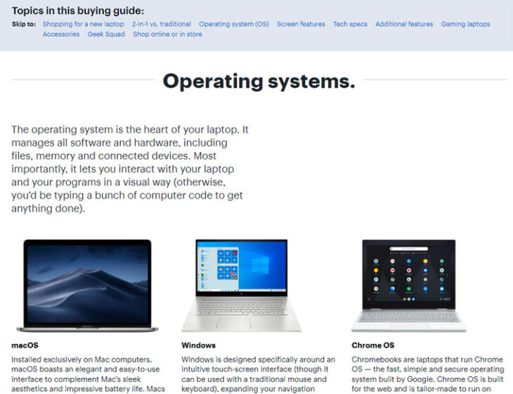 Let’s look at Best Buy again for a good example. Here’s their buying guide for purchasing laptops: